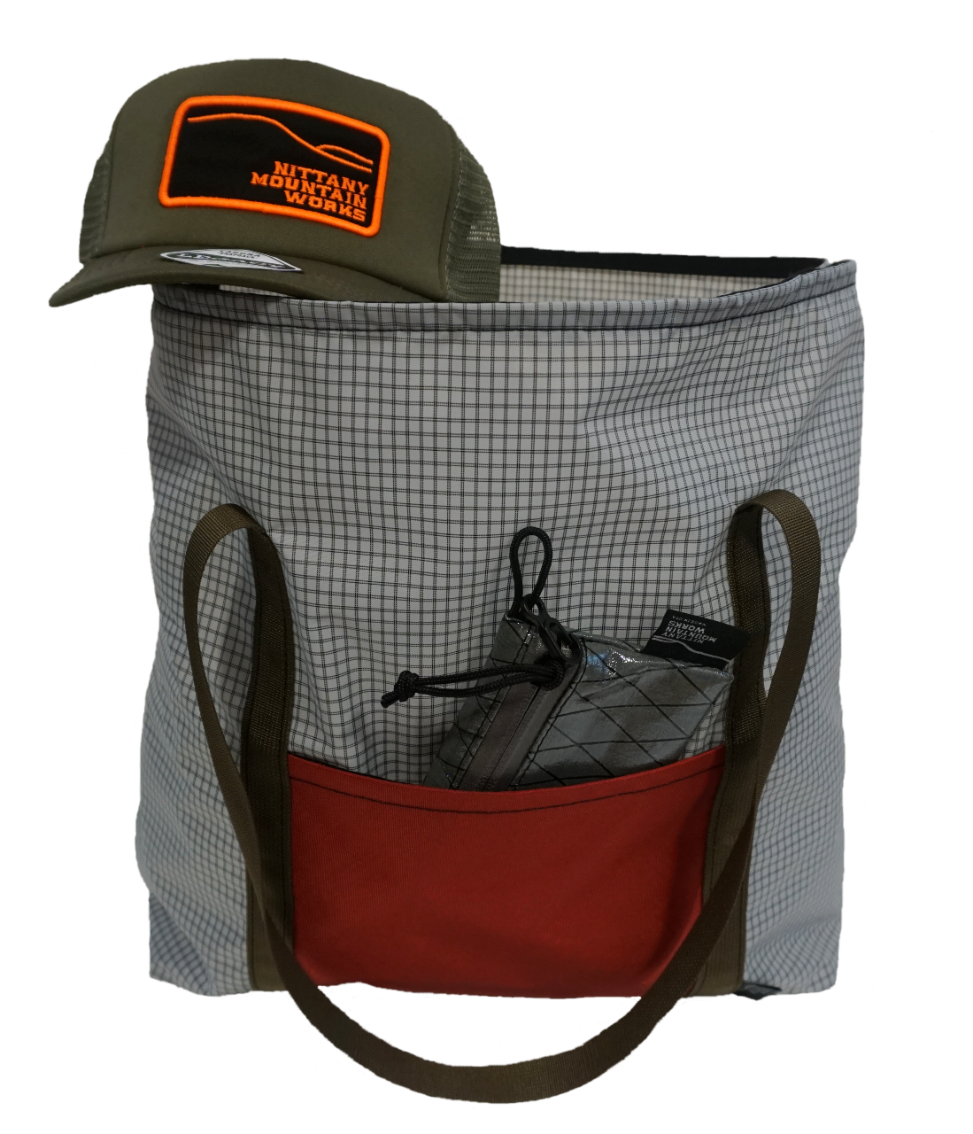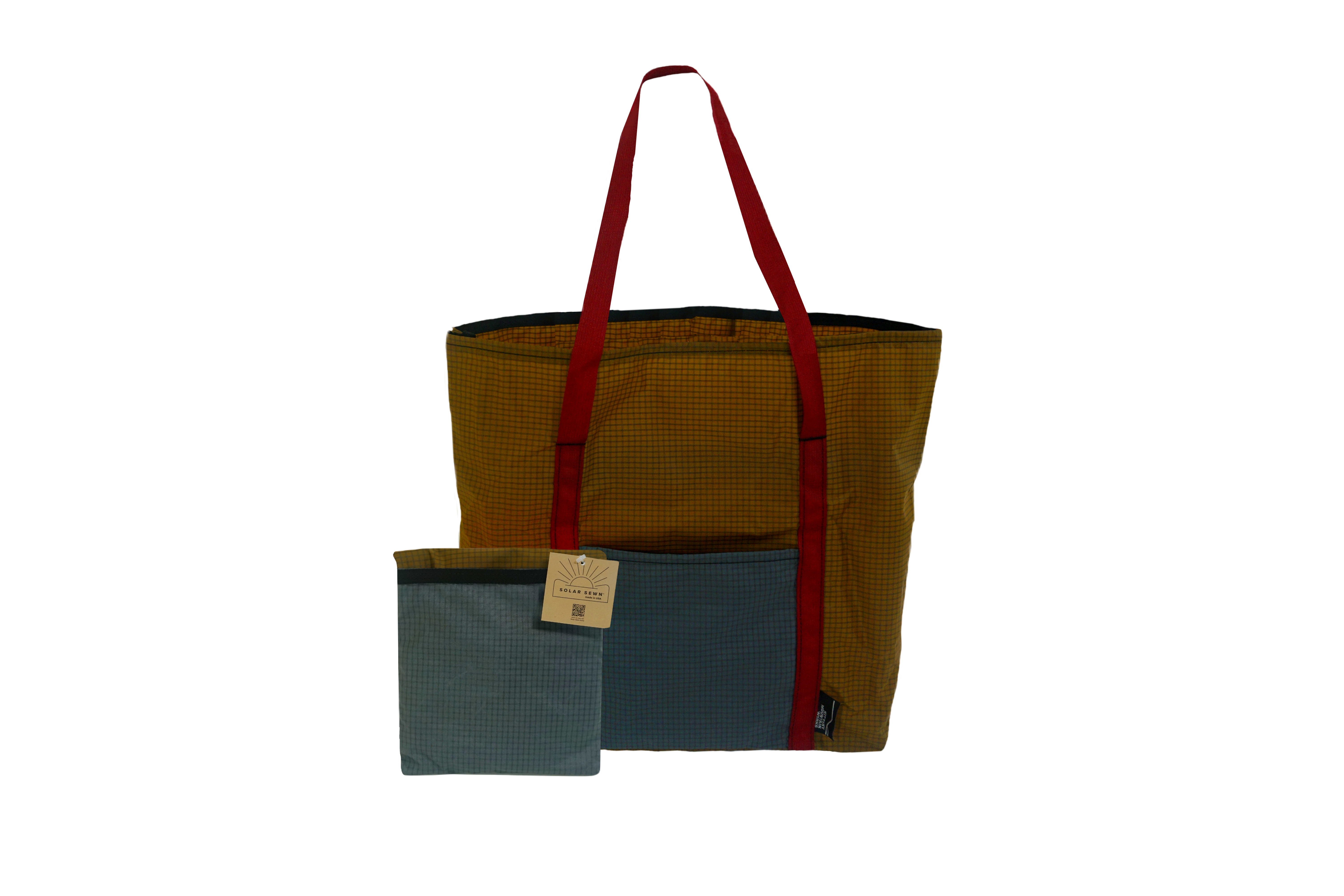 A unique twist on our classic Market tote, built from Ultra Grid fabric recycled Nylon. Whisper Light, durable and a unique aesthetic to boot! Cleanly folds up into its own pocket for discrete storage.